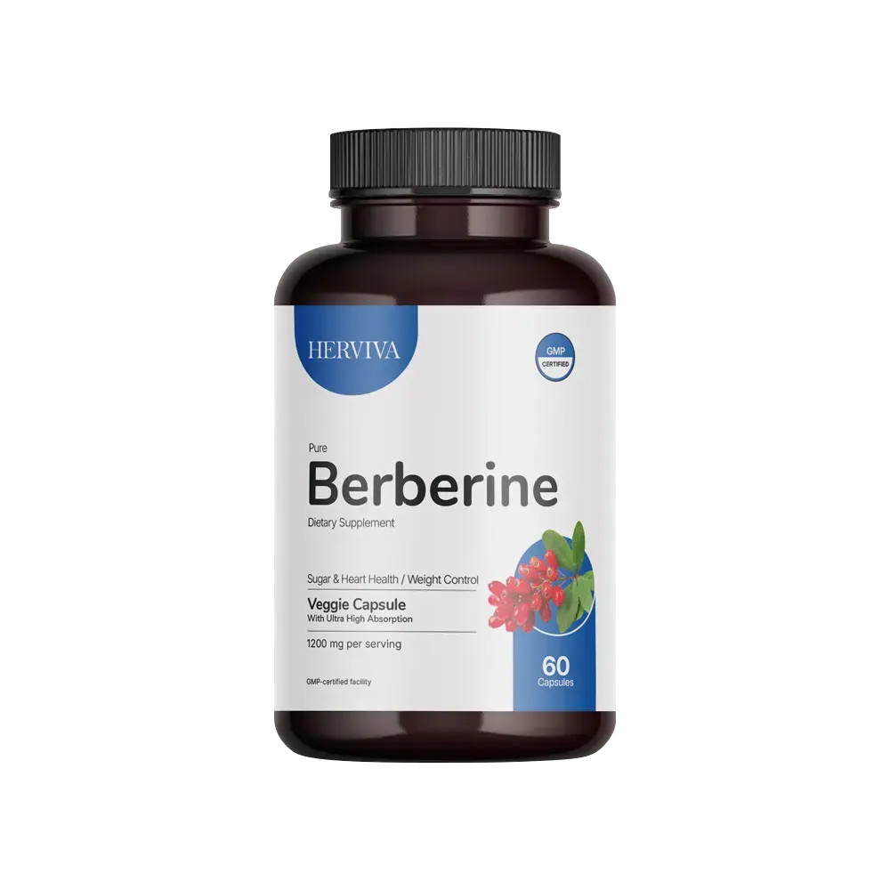 The recommended daily serving is two Herviva berberine capsules, providing a total of 1200 mg per day.